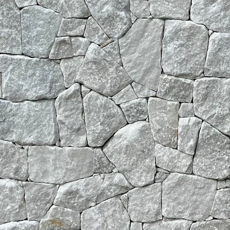 (R) Mati Free Style Walling presents a graceful blend of light greys and soft beige tints in irregular stone shapes, creating a raw yet regal feel. The organic, free-spirited layout gives a unique look, perfect for your statement walls, retaining walls, fireplace surrounds or exterior façades.