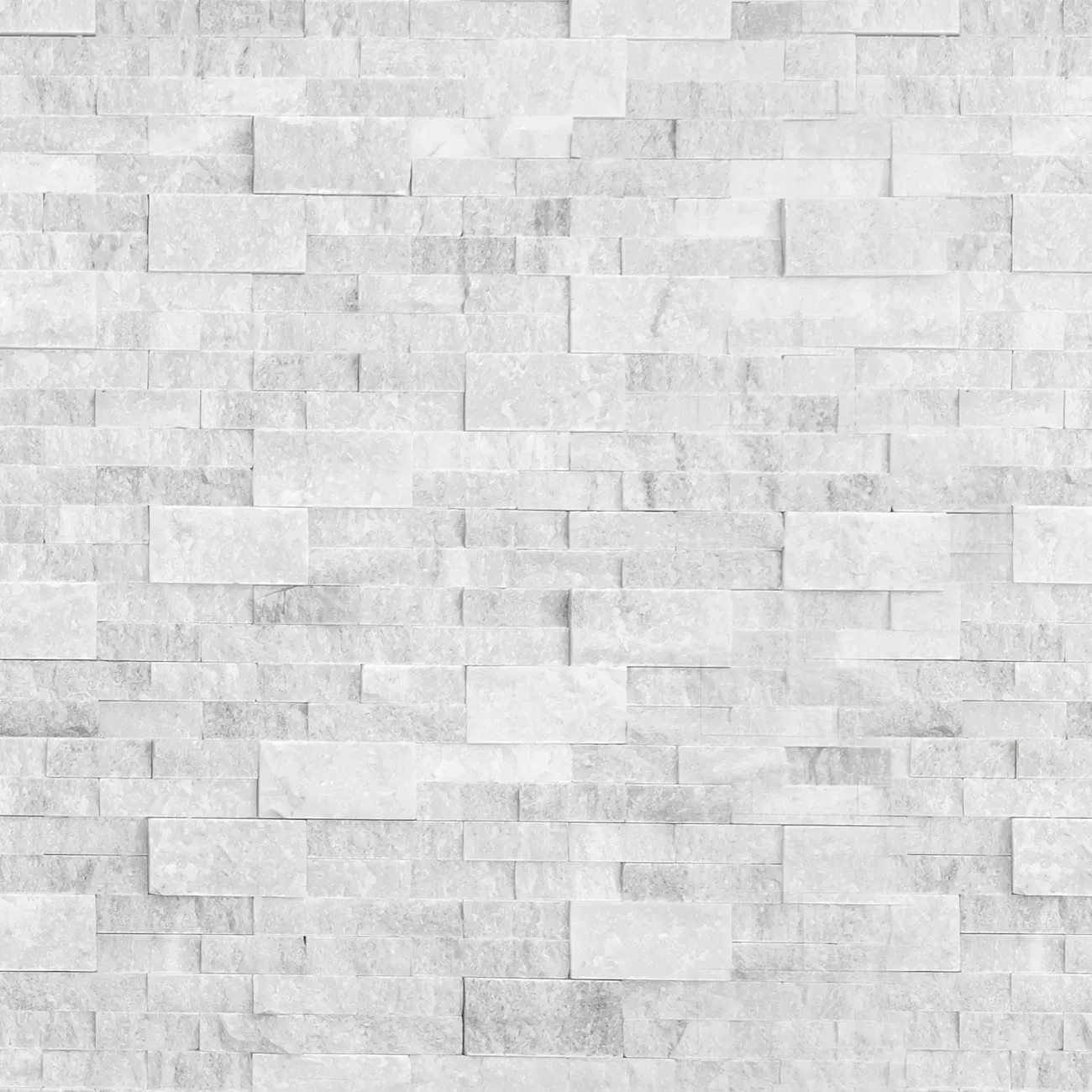 (R) The Arctic White Stacked Stone Walling, a pristine all-white stone with a natural split finish, adds a touch of elegance to any space. It creates a sleek and modern aesthetic that effortlessly complements a variety of design styles.