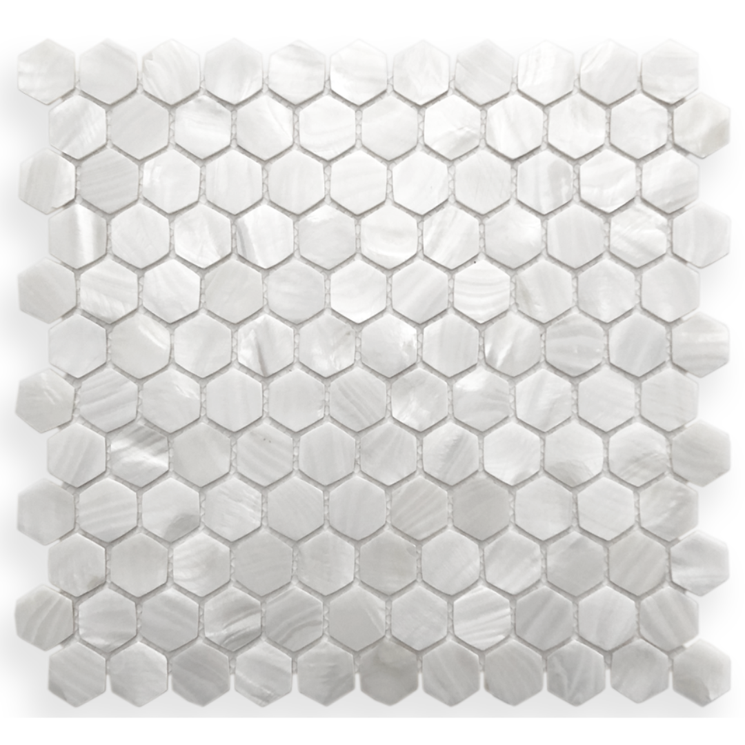 MOTHER OF PEARL HEXAGON MOSAIC CHIP SIZE 25mm DIA x 2 mm, SHEET SIZE 293x307mm,11.12 SHEETS/m2, 40 SHEETS/BOX