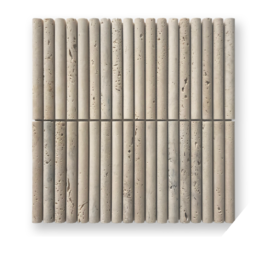 (Y) The stone flute series are individual pieces of solid stone machined to fit together. While the surface is curved there is a 10mm wide flat strip along each edge. They are designed not to require grouting.